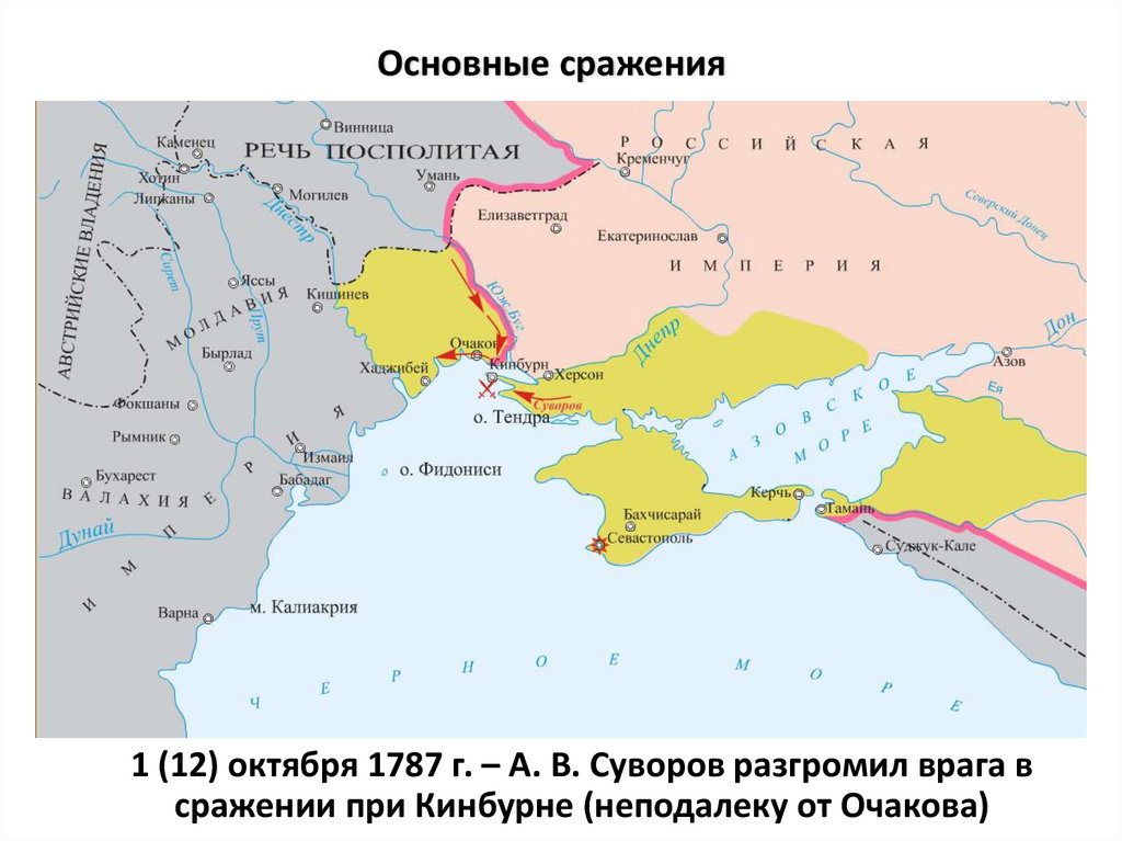 1 (12) октября 1787 г. – А. В. Суворов разгромил врага всражении при Кинбурне (неподалеку от Очакова)