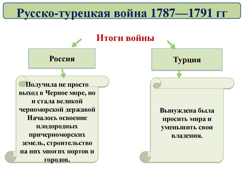 Русско-турецкая война 1787—1791 ггИтоги войны