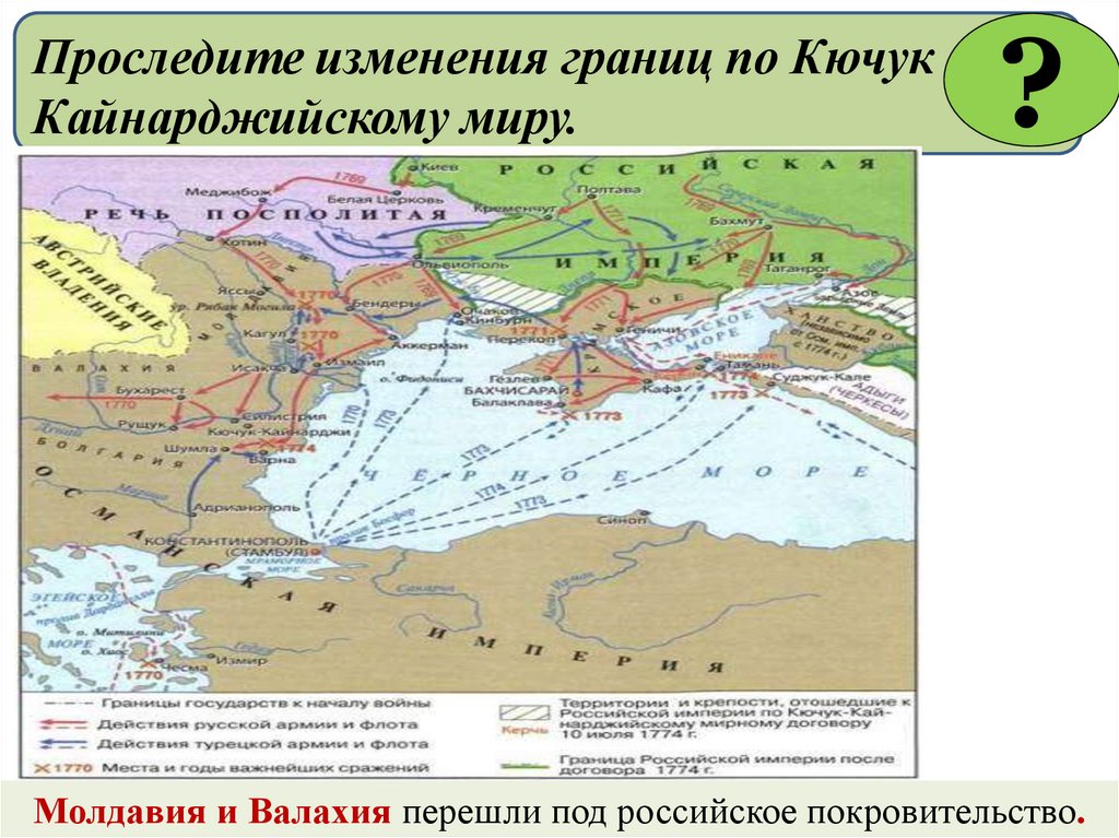 Проследите изменения границ по Кючук Кайнарджийскому миру.?