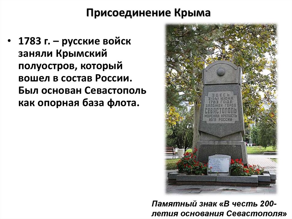 • 1783 г. – русские войскзаняли Крымский