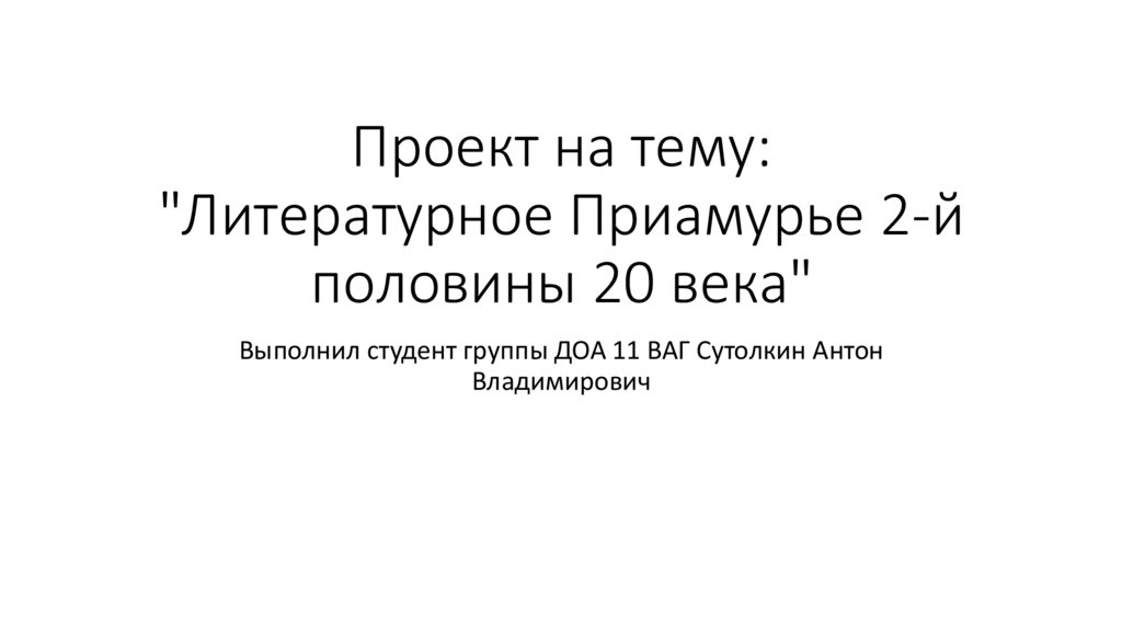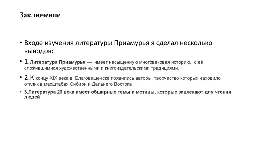 Заключение• Входе изучения литературы Приамурья я сделал несколько