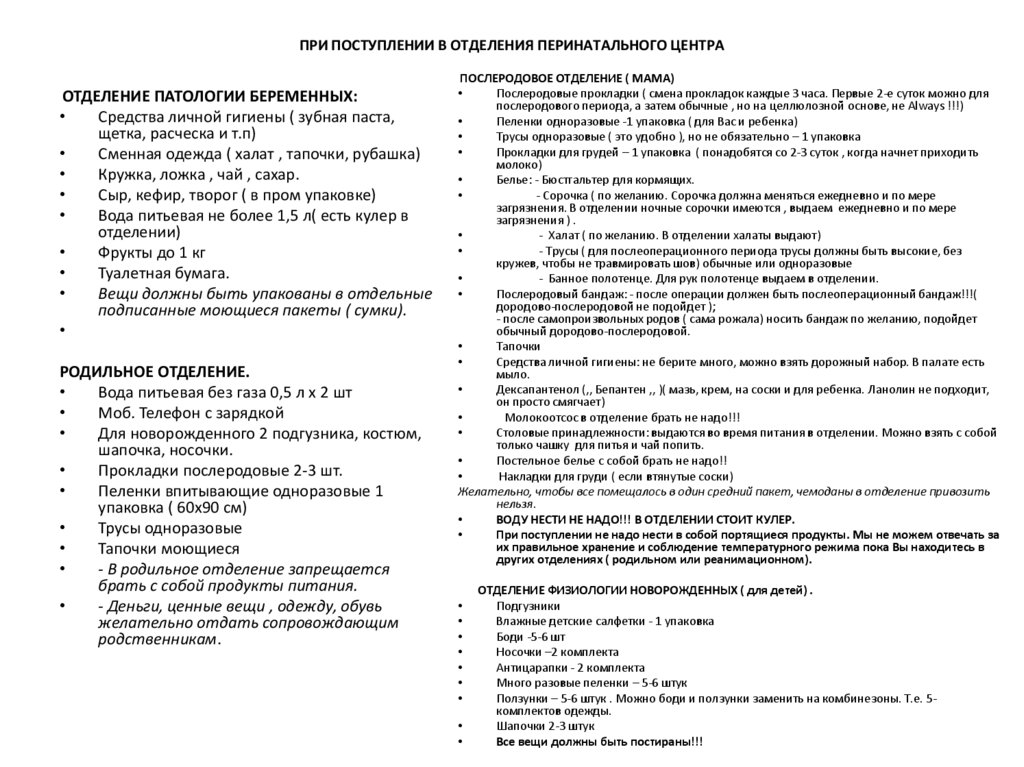 Памятка при поступлении в отделения перинатального центра отделение патологии беременных