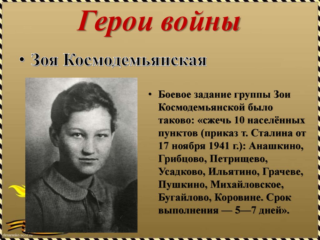 Герои войны• Боевое задание группы Зои
