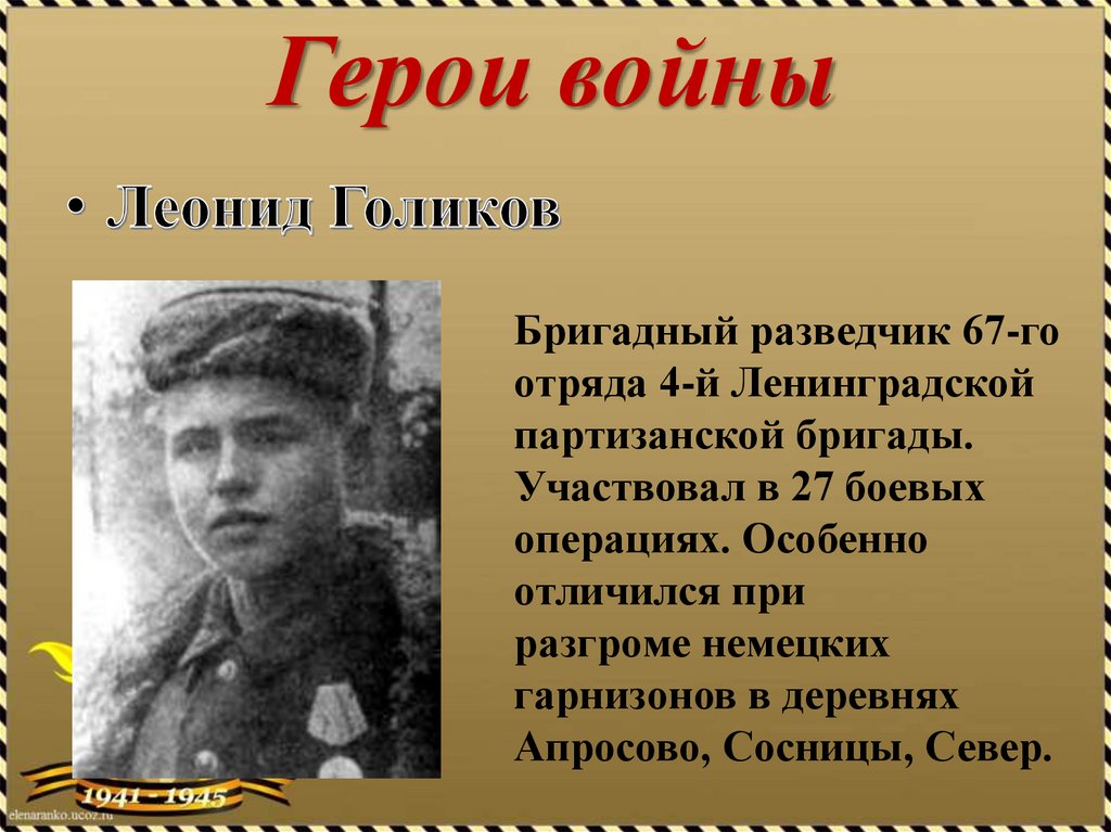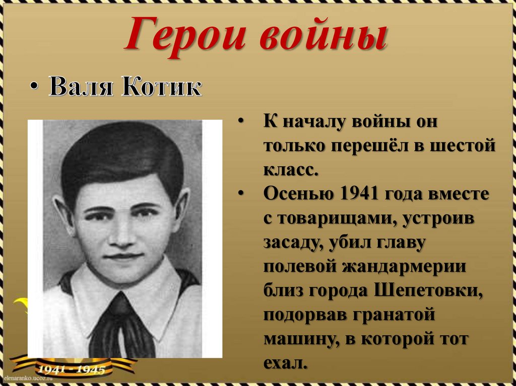 Герои войны• К началу войны он