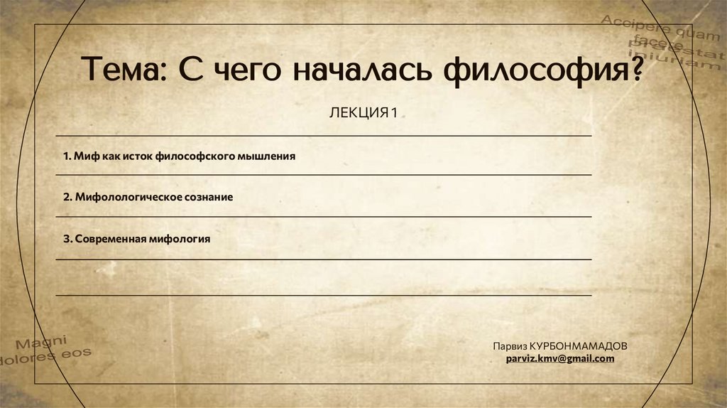 Тема: С чего началась философия?ЛЕКЦИЯ 1