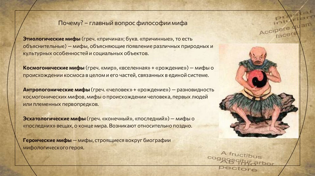 Почему? – главный вопрос философии мифаЭтиологические мифы (греч. «причина»; букв. «причинные», то есть