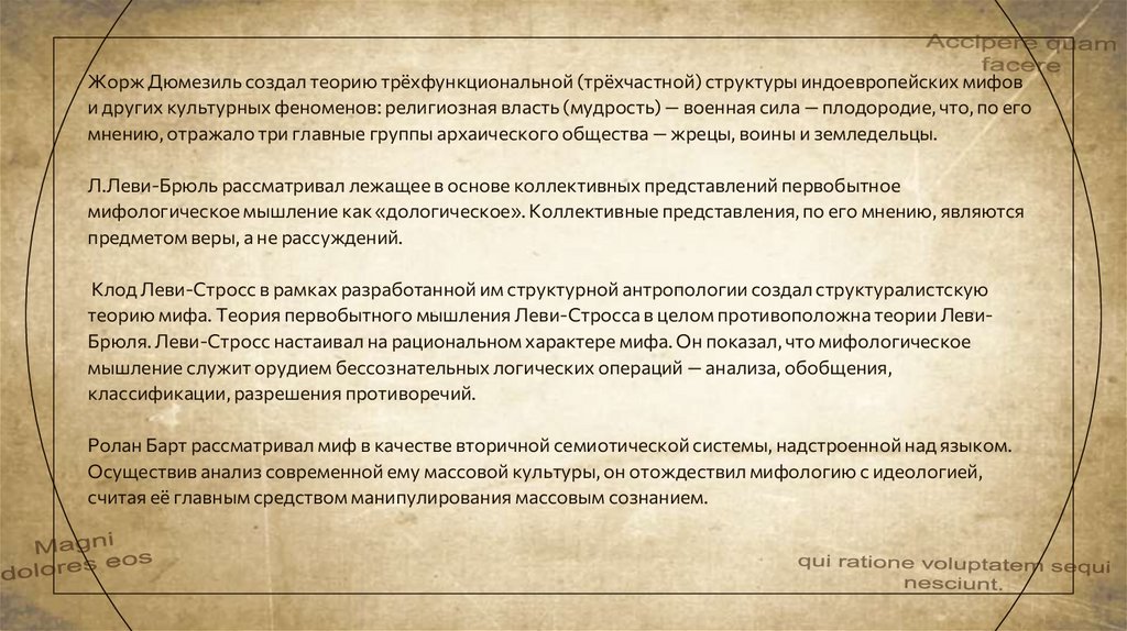 мифологическое мышление как «дологическое». Коллективные представления, по его мнению, являются