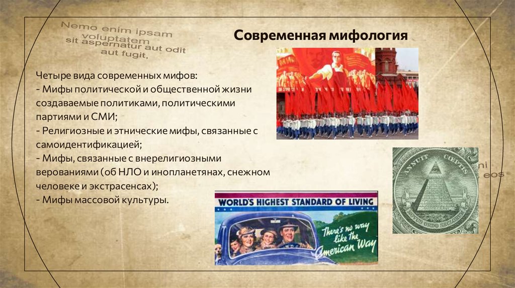 Современная мифологияЧетыре вида современных мифов: