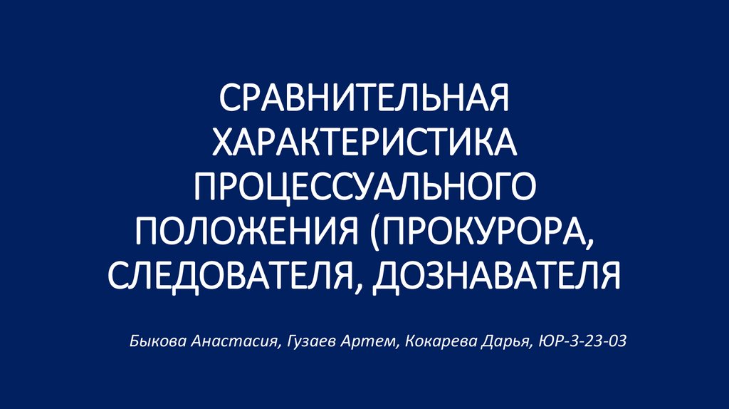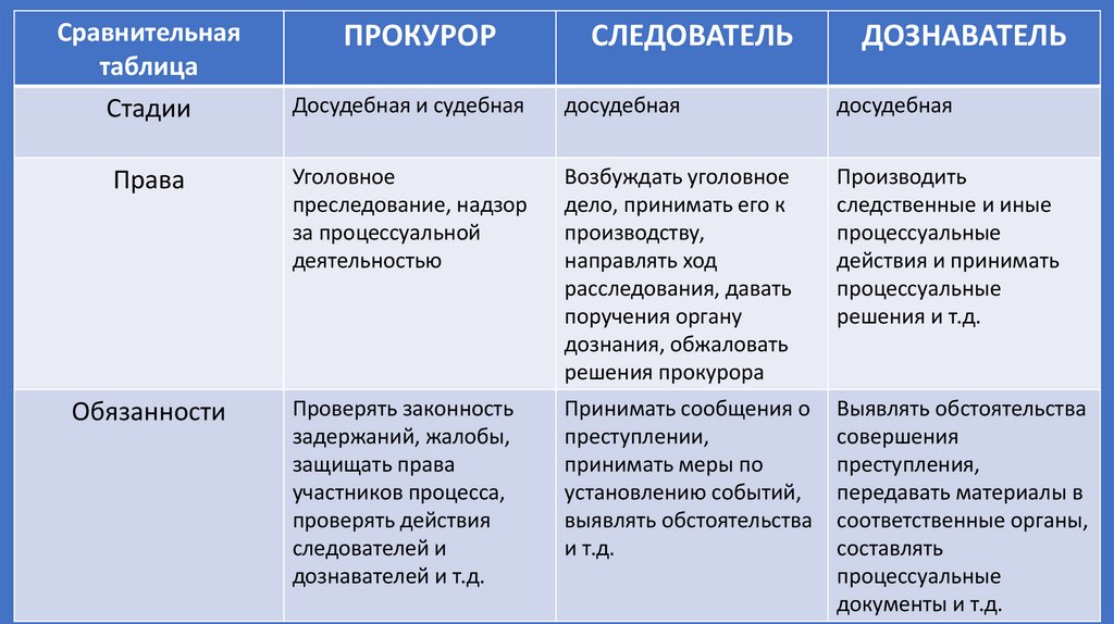 Сравнительная характеристика процессуального положения (прокурора, следователя, дознавателя)