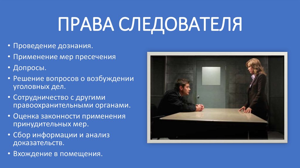 ПРАВА СЛЕДОВАТЕЛЯ• Проведение дознания.