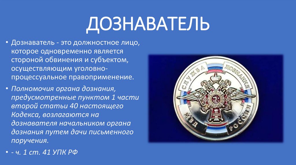 ДОЗНАВАТЕЛЬ• Дознаватель - это должностное лицо,