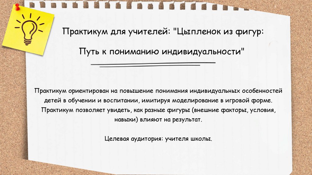 Практикум для учителей: "Цыпленок из фигур:Путь к пониманию индивидуальности"