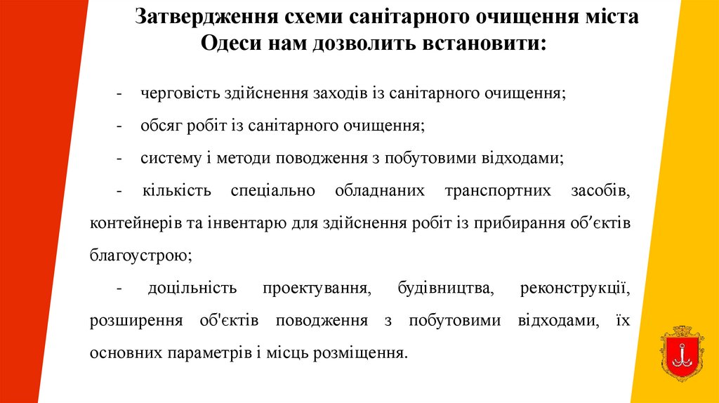 Затвердження схеми санітарного очищення містаОдеси нам дозволить встановити: