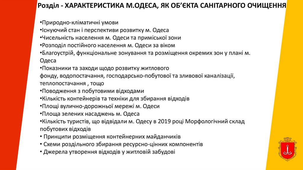 Розділ - ХАРАКТЕРИСТИКА М.ОДЕСА, ЯК ОБ’ЄКТА САНІТАРНОГО ОЧИЩЕННЯ•Природно-кліматичні умови