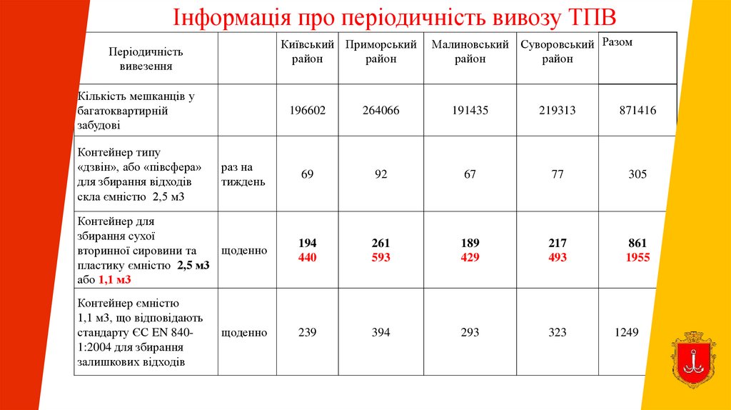 Інформація про періодичність вивозу ТПВКиївський Приморський