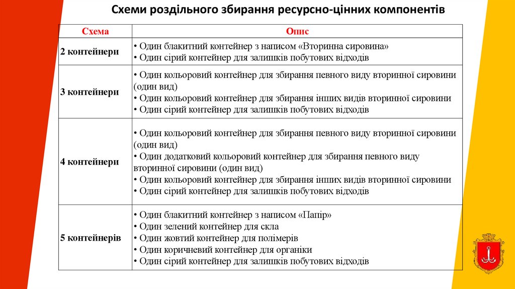 Схеми роздільного збирання ресурсно-цінних компонентівСхема