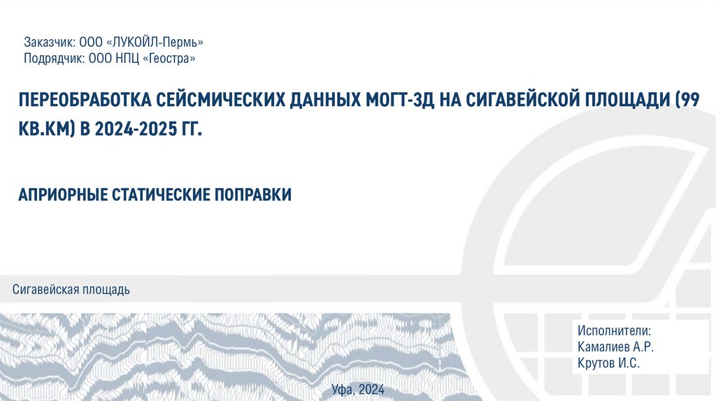 ПЕРЕОБРАБОТКА СЕЙСМИЧЕСКИХ ДАННЫХ МОГТ-3Д НА СИГАВЕЙСКОЙ ПЛОЩАДИ (99