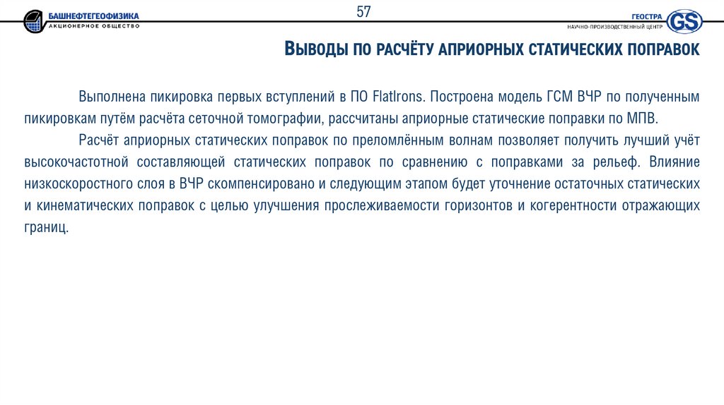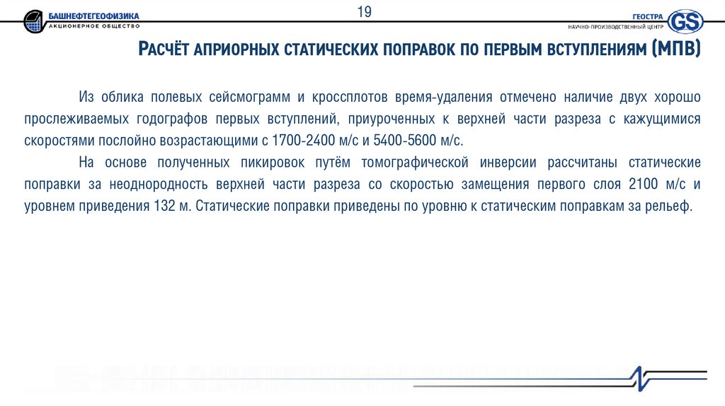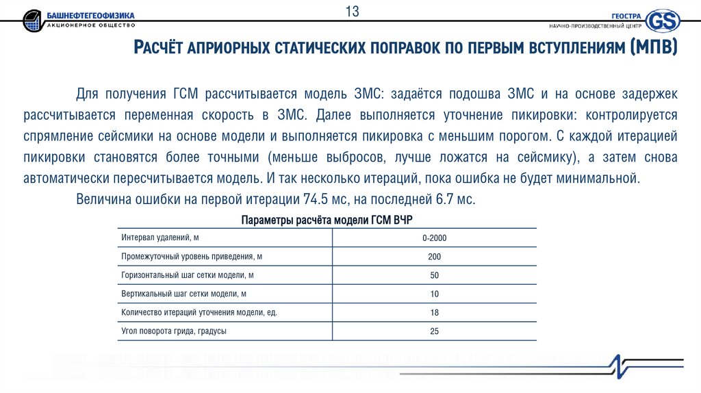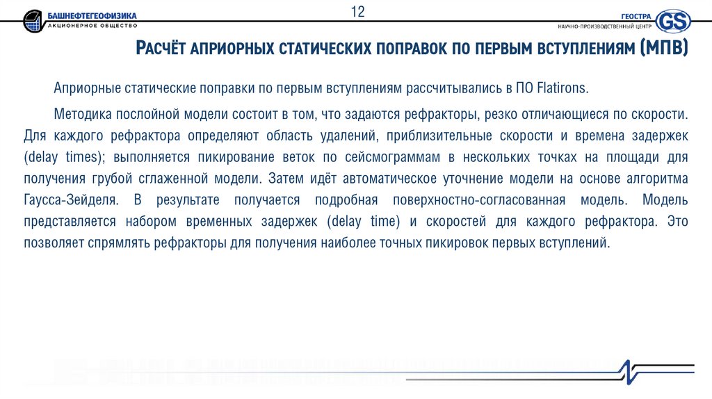 7. Сравнительный анализ разных методов расчёта априорных статических поправок.
