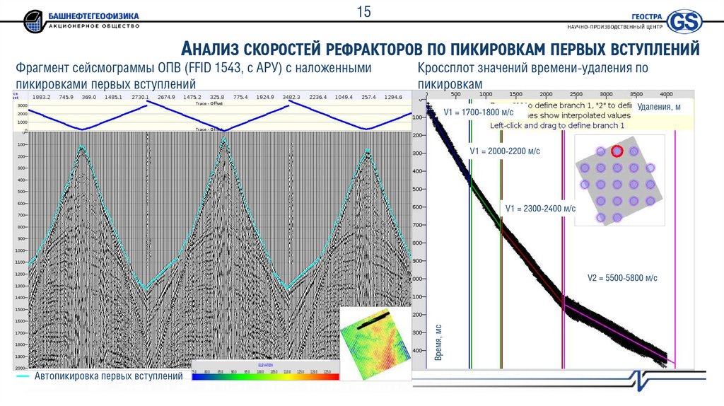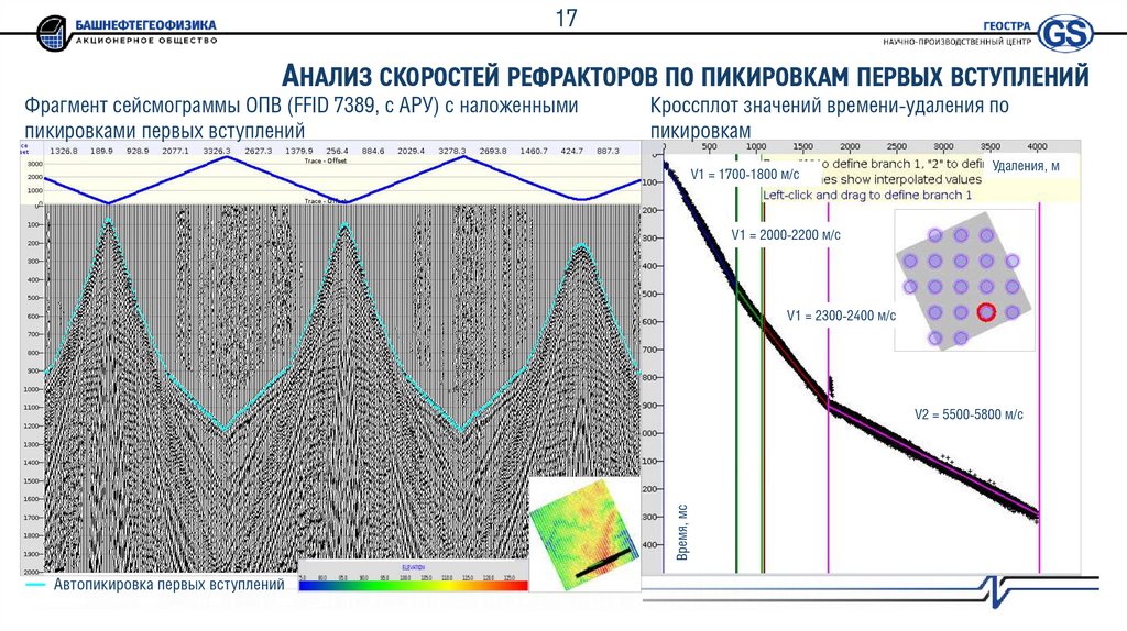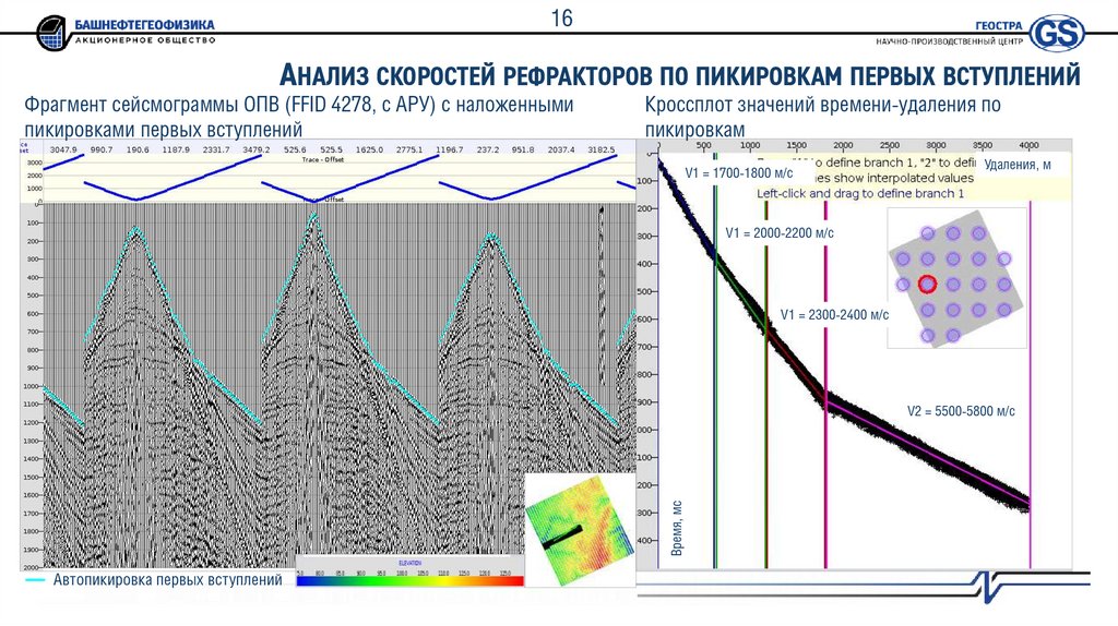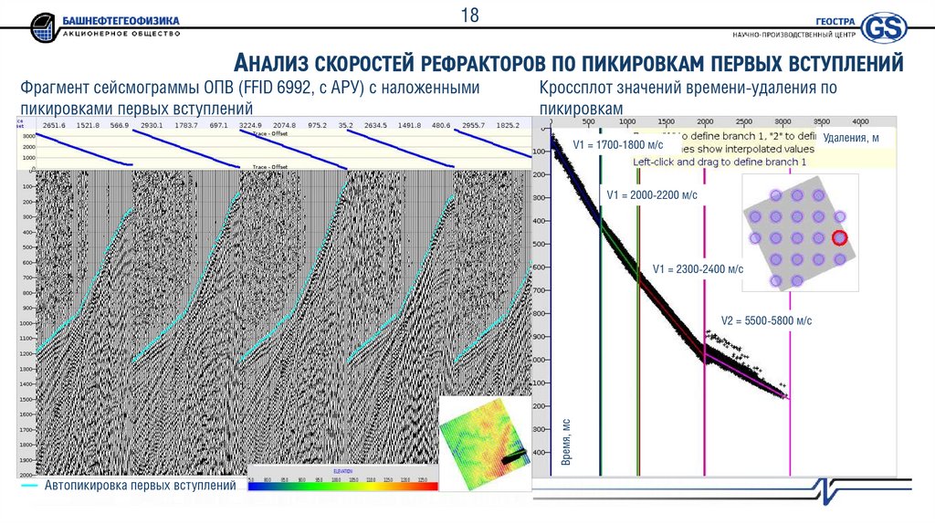 2. Интерактивный контроль качества результата автопикировки по сейсмограммам ПВ и кросс-плотам «время пикировок