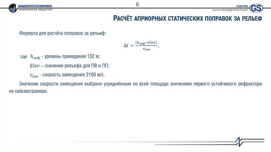 6РАСЧЁТ АПРИОРНЫХ СТАТИЧЕСКИХ ПОПРАВОК ЗА РЕЛЬЕФ