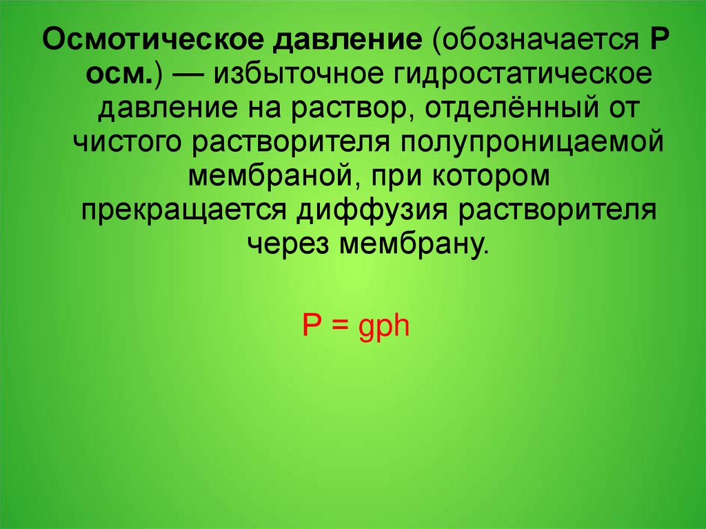 Осмотическое давление (обозначается Росм.) — избыточное гидростатическое