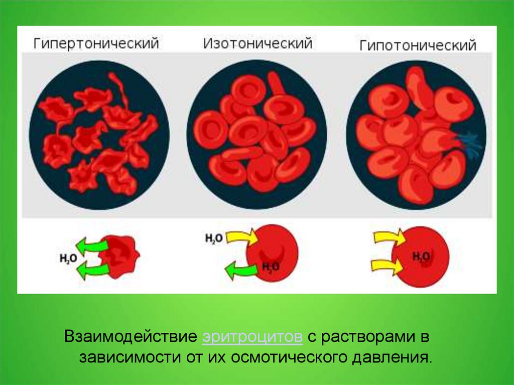 Взаимодействие эритроцитов с растворами взависимости от их осмотического давления.