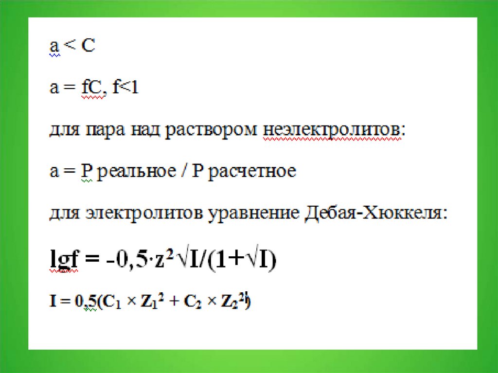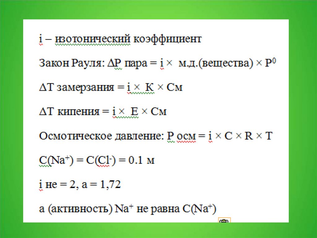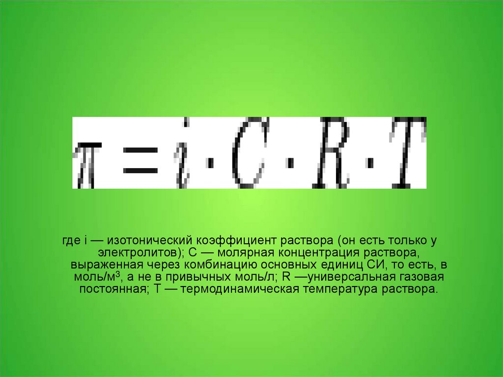 где i — изотонический коэффициент раствора (он есть только уэлектролитов); C — молярная концентрация раствора,