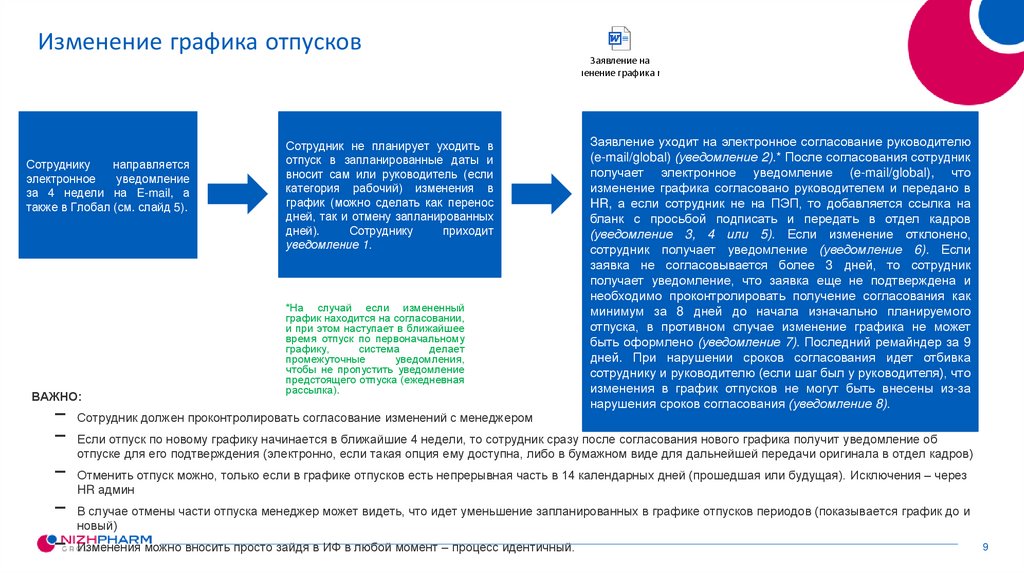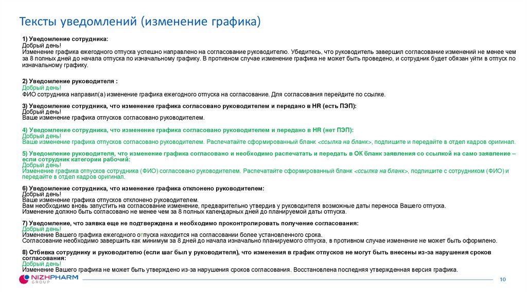 − После согласования изменения графика отправлять уведомление сотруднику о наличие отпусков с датой начала менее чем через 14 кд