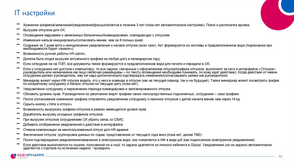 − Возможность выгружать графики отпусков в рамках имеющегося уровня прав