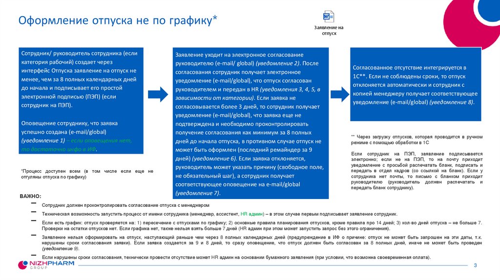 Оформление отпуска не по графику*Сотрудник/ руководитель сотрудника (если
