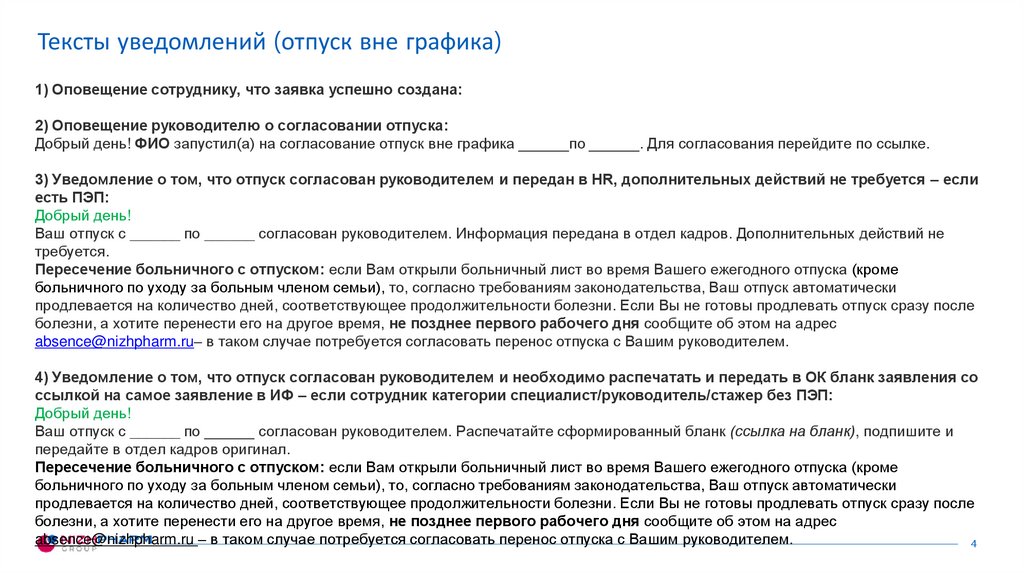 передать в отдел кадров (со ссылкой на бланк) (уведомление 4). Если у сотрудника нет почты, то письмо с бланком приходит руководителю (руководитель