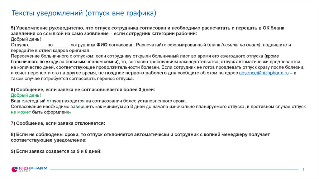 Ваше заявление отклонено. При наличии вопросов обращайтесь на адрес: absence@nizhpharm.ru.