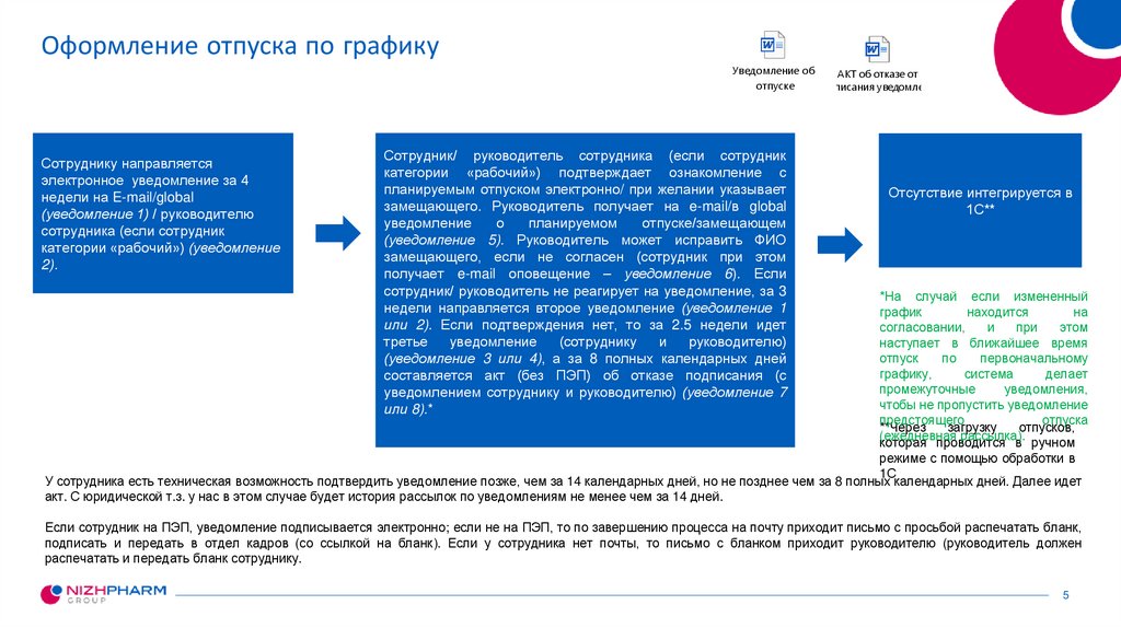 Если сотрудник на ПЭП, то заявление подписывается электронно. Если не на ПЭП, то приходит уведомление с просьбой распечатать бланк, подписать и