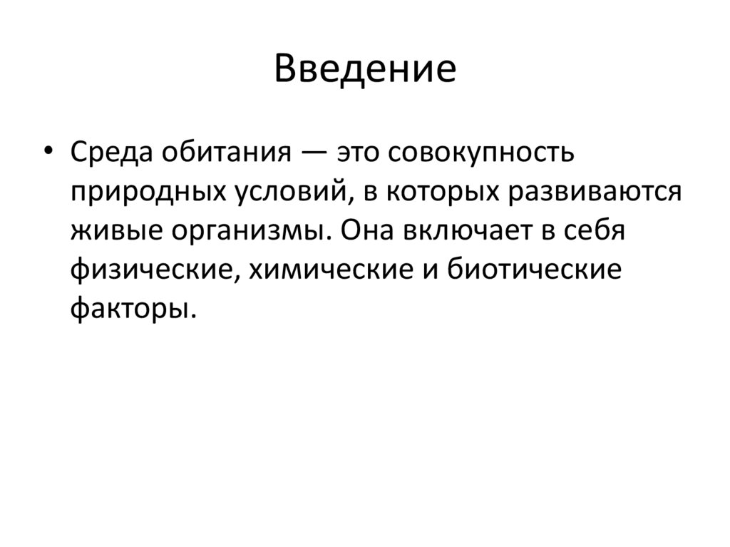 Введение• Среда обитания — это совокупность