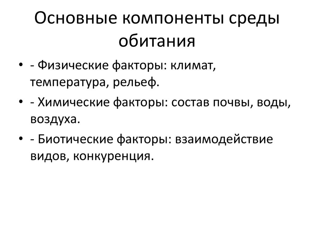 Основные компоненты средыобитания