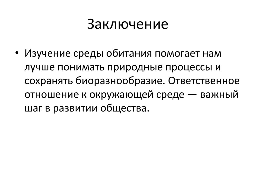 Заключение• Изучение среды обитания помогает нам