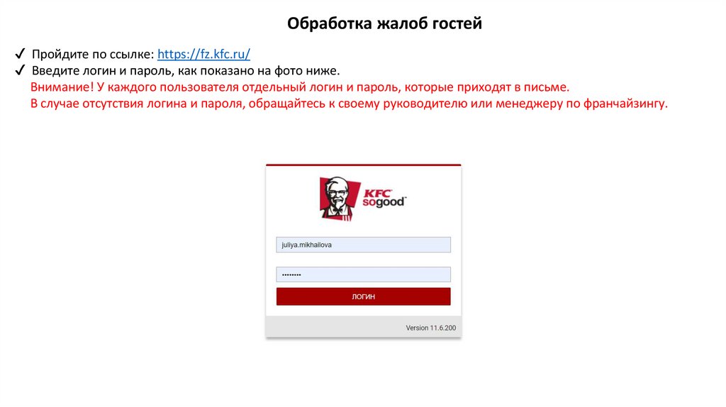 Обработка жалоб гостей✔ Пройдите по ссылке: https://fz.kfc.ru/