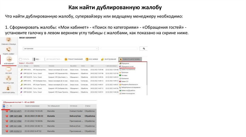 Как найти дублированную жалобуЧто найти дублированную жалобу, супервайзеру или ведущему менеджеру необходимо: