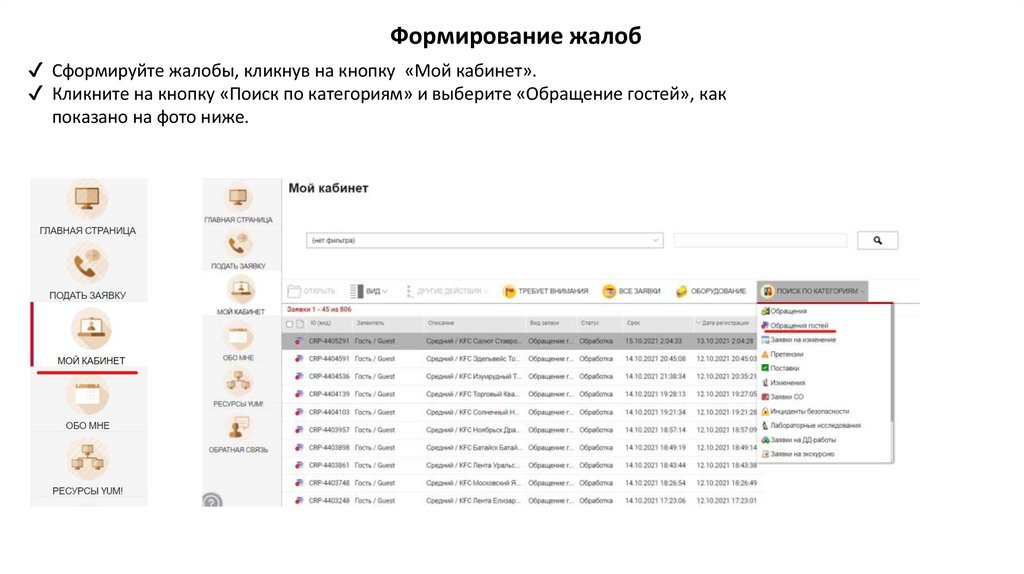Формирование жалоб✔ Сформируйте жалобы, кликнув на кнопку «Мой кабинет».