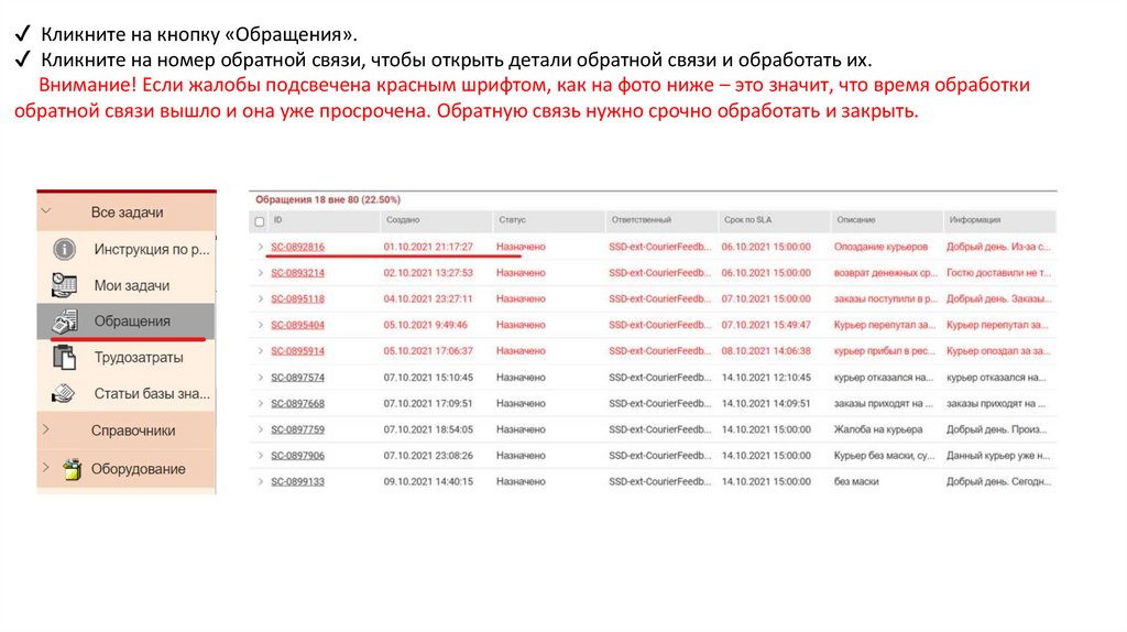 ✔ Кликните на кнопку «Обращения».✔ Кликните на номер обратной связи, чтобы открыть детали обратной связи и обработать их.