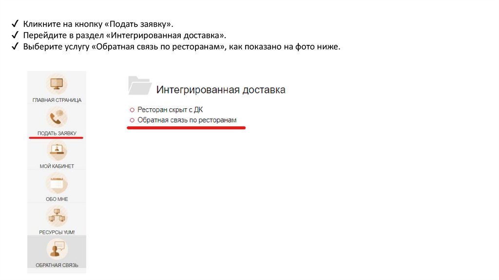 ✔ Выберите услугу «Обратная связь по ресторанам», как показано на фото ниже.