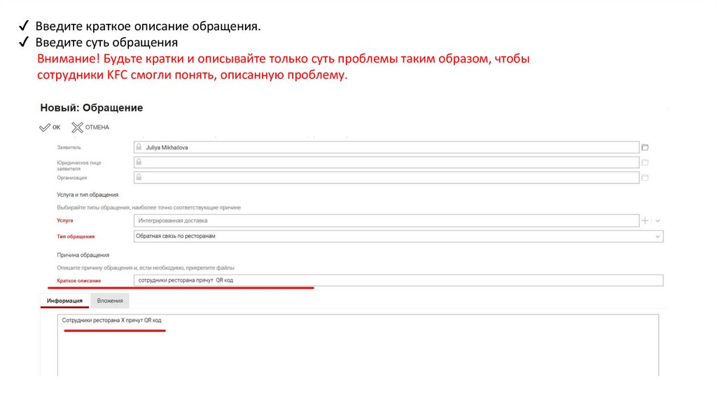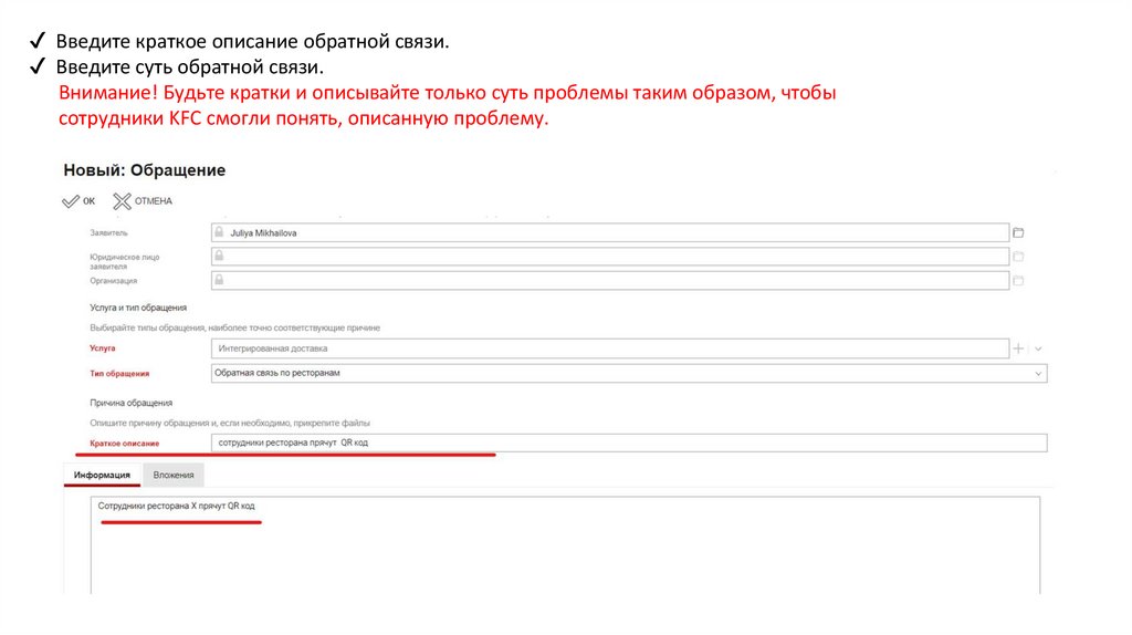 ✔ Введите краткое описание обращения.✔ Введите суть обращения