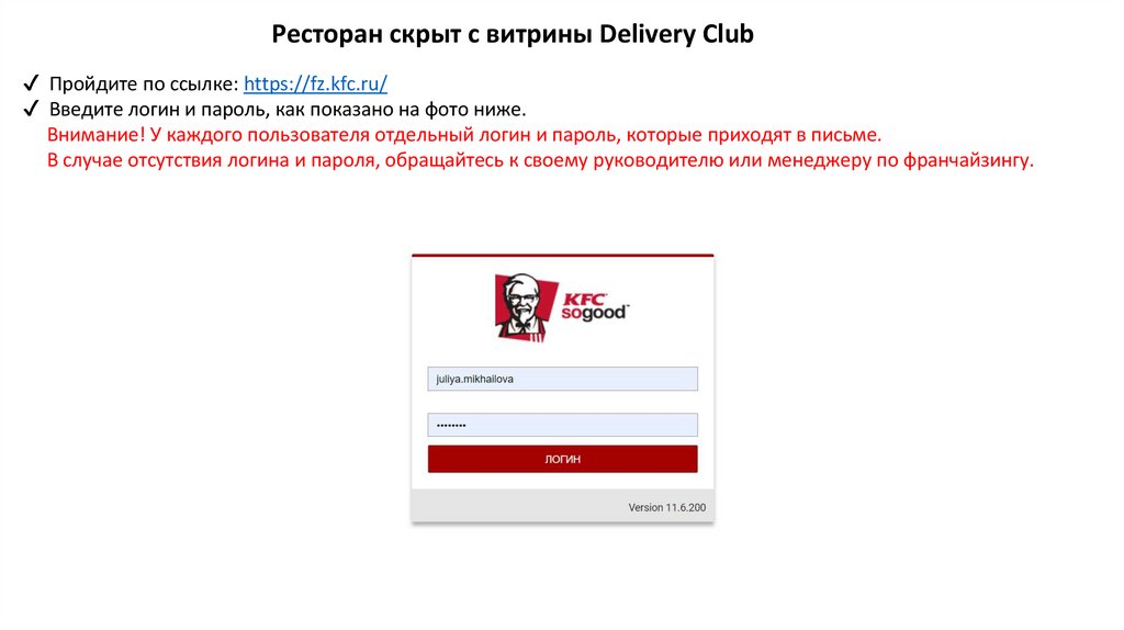 Ресторан скрыт с витрины Delivery Club✔ Пройдите по ссылке: https://fz.kfc.ru/