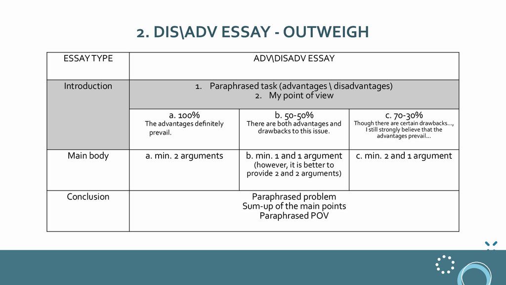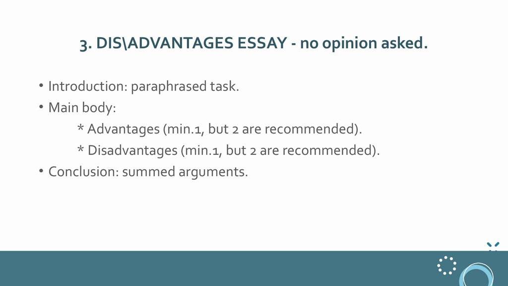 3. DIS\ADVANTAGES ESSAY - no opinion asked.• Introduction: paraphrased task.