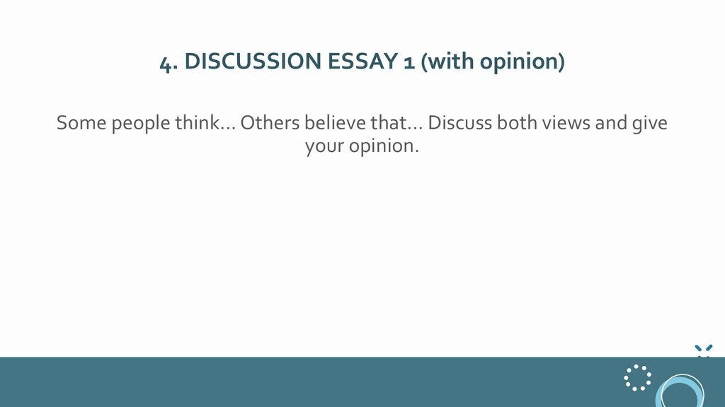 4. DISCUSSION ESSAY 1 (with opinion)Some people think... Others believe that... Discuss both views and give