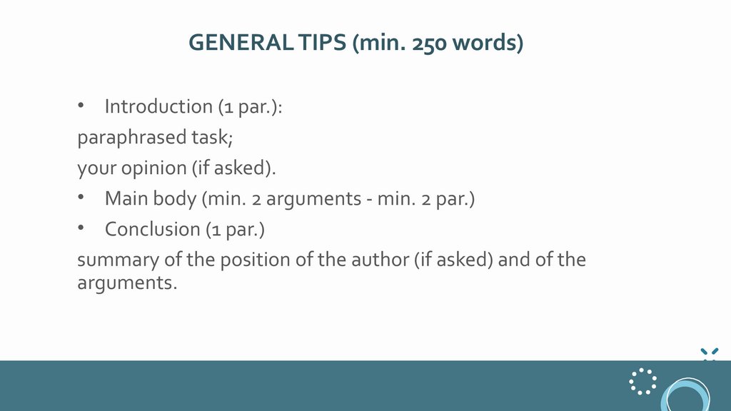 GENERAL TIPS (min. 250 words)• Introduction (1 par.):