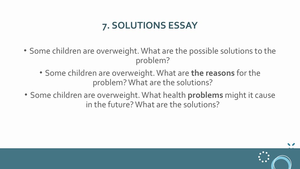 7. SOLUTIONS ESSAY• Some children are overweight. What are the possible solutions to the