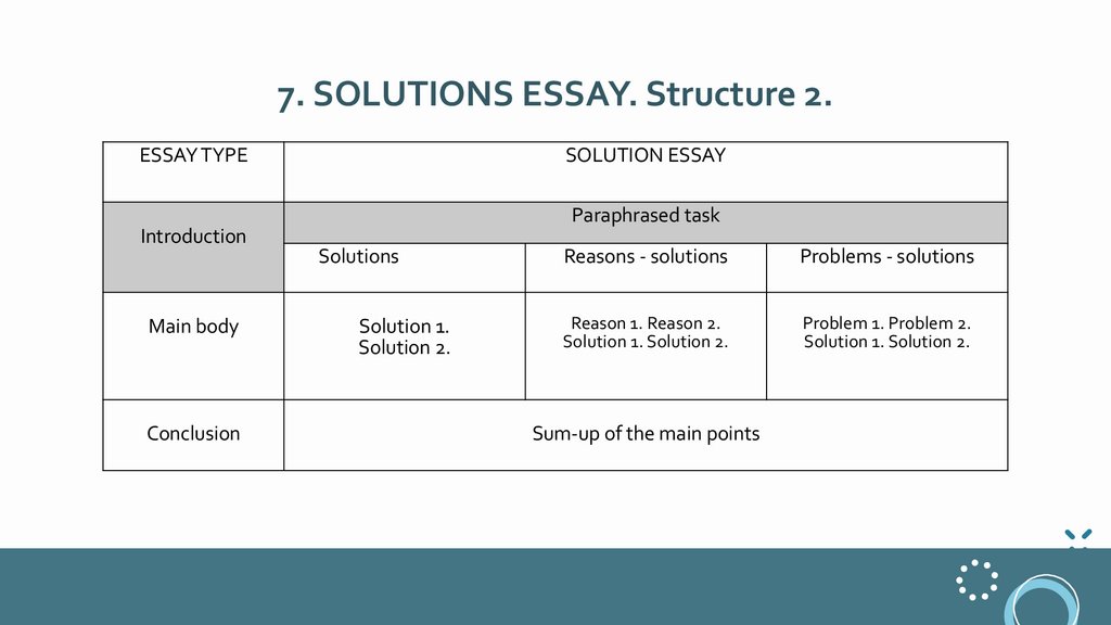 7. SOLUTIONS ESSAY. Structure 2.ESSAY TYPE