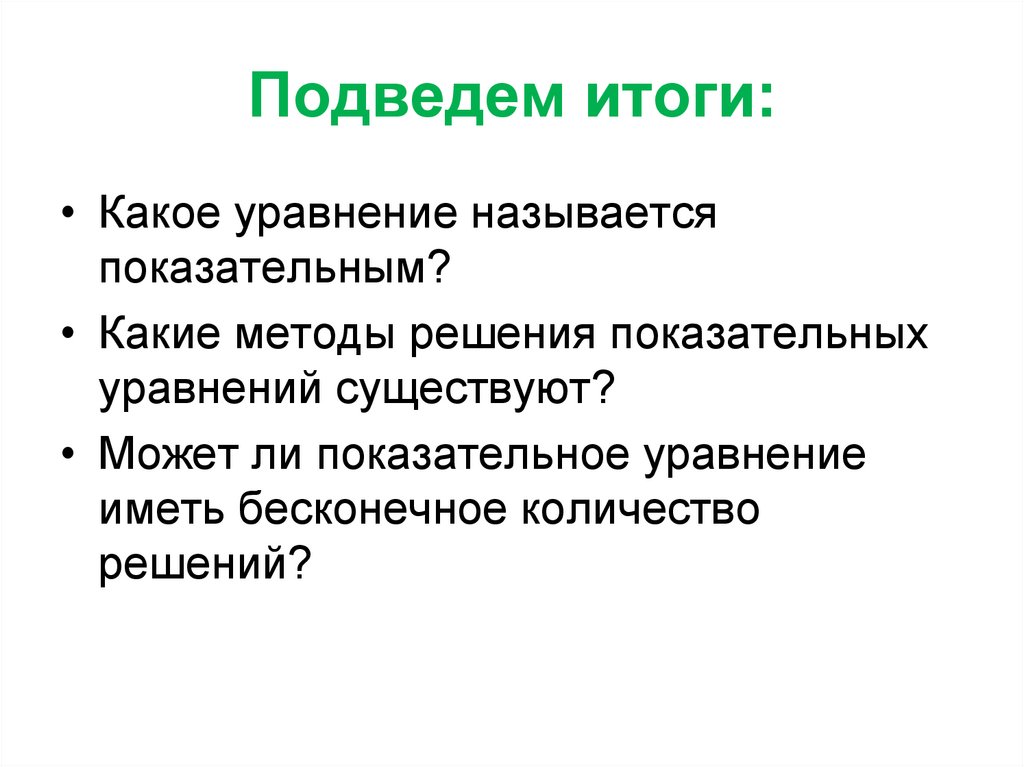 Подведем итоги:• Какое уравнение называется