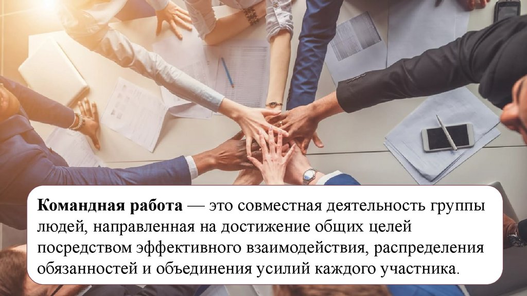 Командная работа — это совместная деятельность группылюдей, направленная на достижение общих целей